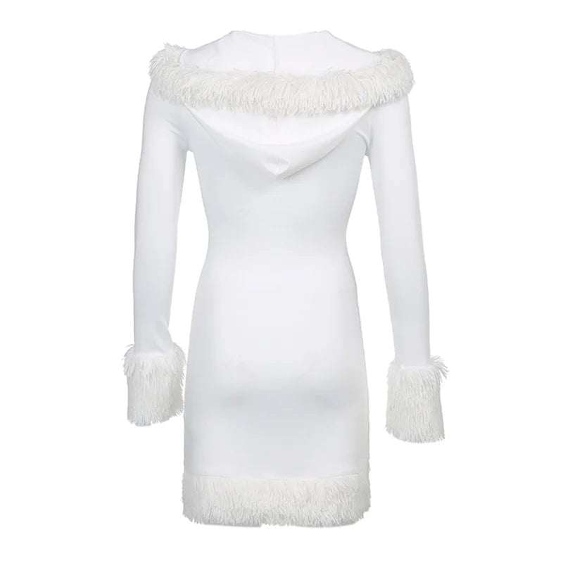 The Veloura™ dress combines cozy comfort with sleek, bodycon style for winter-ready fashion. Featuring a plush hem, splicing detailing, and a stylish V-neck hooded design, it delivers warmth, elegance, and effortless style. The long sleeves and solid color make it perfect for layering or wearing on its own, while the fitted silhouette accentuates curves gracefully. Ideal for casual outings, cozy nights, or seasonal events, this dress brings comfort and chic design together for everyday wear.